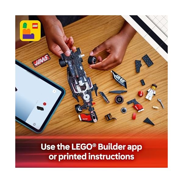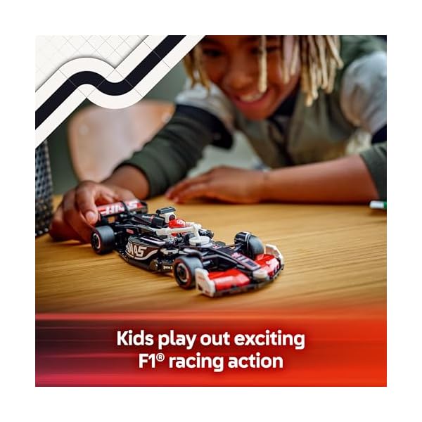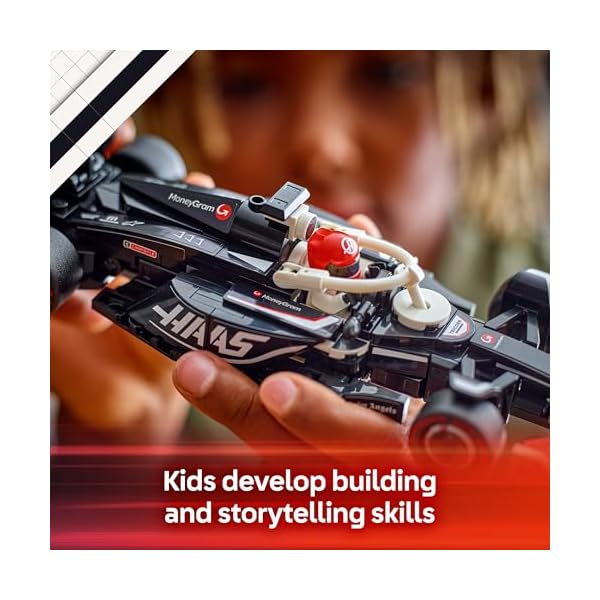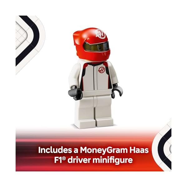 INCLUDES 1 DRIVER MINIFIGURE – The vehicle kit includes a driver minifigure wearing a MoneyGram Haas F1 Team outfit and a winged helmet for kids to place inside the cockpit and role-play thrilling race action